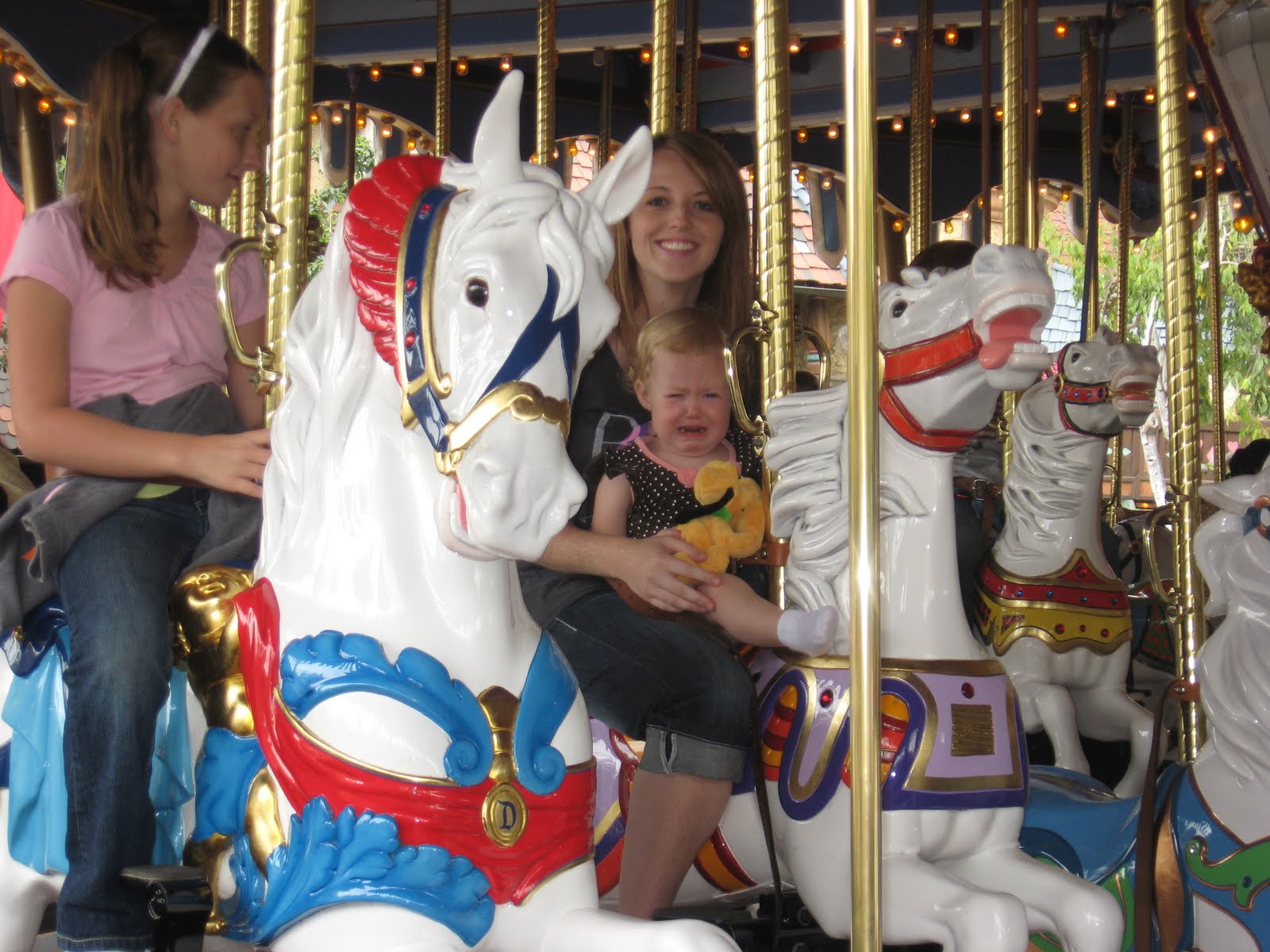 {We went to Disneyland and California Adventure Thursday and Friday. You'll notice most pictures of Aubree are of her either crying/yelling at us.. I promise she doesn't hate life, she just is such a busy body that being contained for the sake of a picture is torture. We had so much fun, but I think we'll wait to take her back til she's about 4 ish :) This was her 3rd time going (I know we are pathetic) and this was by far the hardest, but still SO fun!}